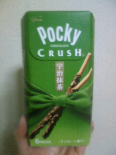 うん、コンビニで買いました!抹茶がちりばめてある、なんともぜいたくな感じのポッキーでした。まあただのポッキーやけど・・。